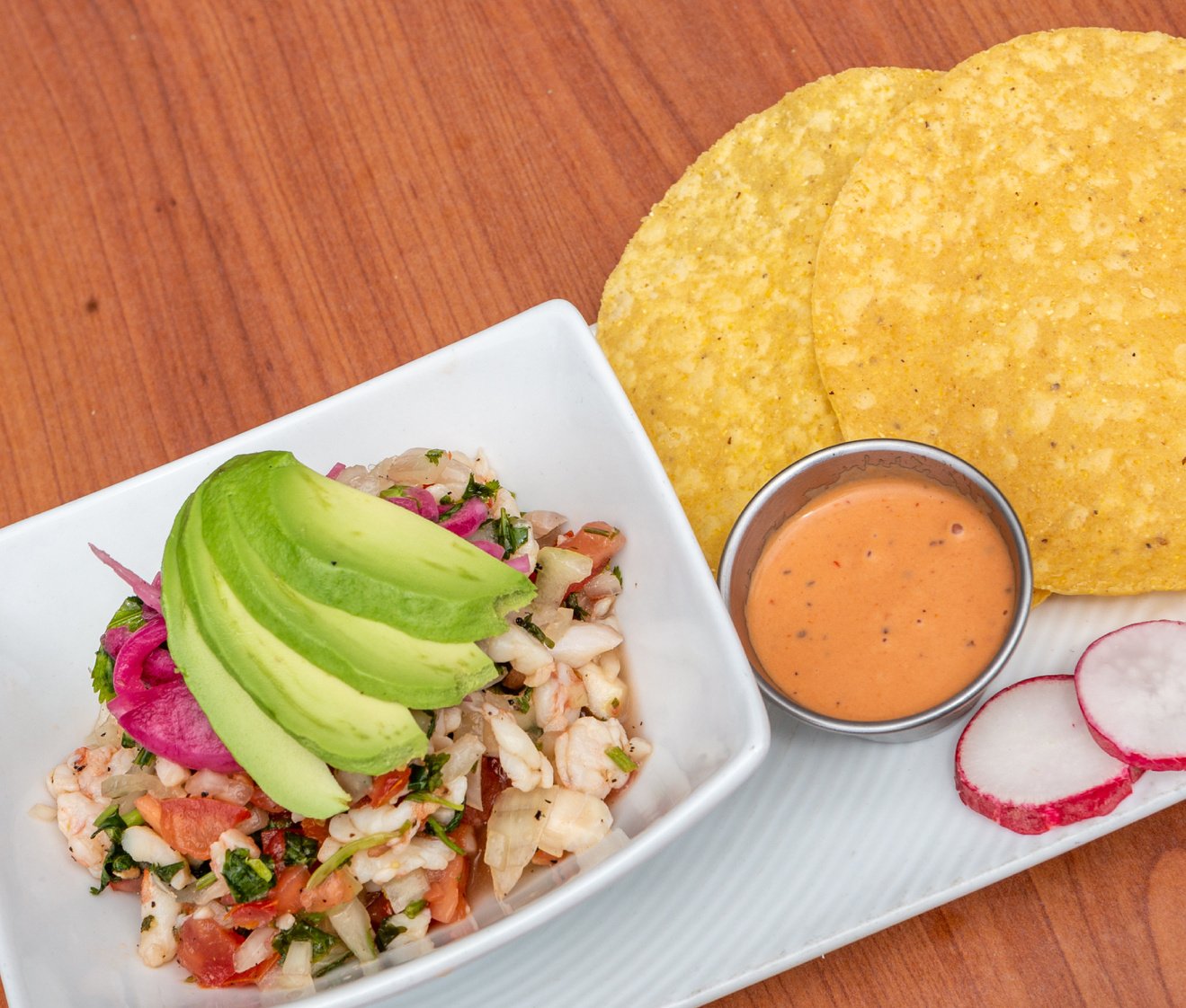 Fresh avocado, pico de gallo and home-made corn tortilla chips